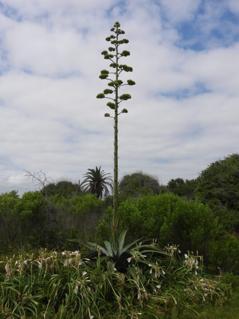 The spectacular flower stalk towers above the plant, reaching an astonishing height (as much as 30 feet high). And, incredibly, the gorgeous display of yellow-green flowers will be pollinated by bees, bats, moths… and even hummingbirds!